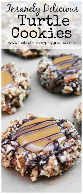 Those look amazing! Either it's turtle cookie day, or I'm seeing double: http://www.fortheloveofcooking.net/2012/09/chocolate-turtle-cookies.html Great minds think alike, huh? :)